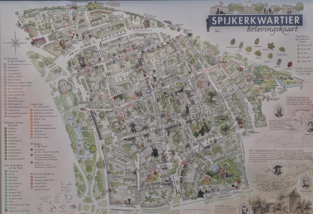 - Historisch-cultureel erfgoed: De wijk is vernoemd naar de “spijkers” (graanschuren) die er vroeger stonden, wat een link legt met de agrarische geschiedenis van het gebied. De herenhuizen zijn gebouwd voor Nederlanders die fortuin hadden gemaakt in Nederlands-Indië, wat een belangrijke maatschappelijke en culturele laag toevoegt aan de geschiedenis van de wijk. Ook de recente geschiedenis, van een roemruchte wijk met prostitutie naar een gewilde woonwijk, is onderdeel van het culturele erfgoed.