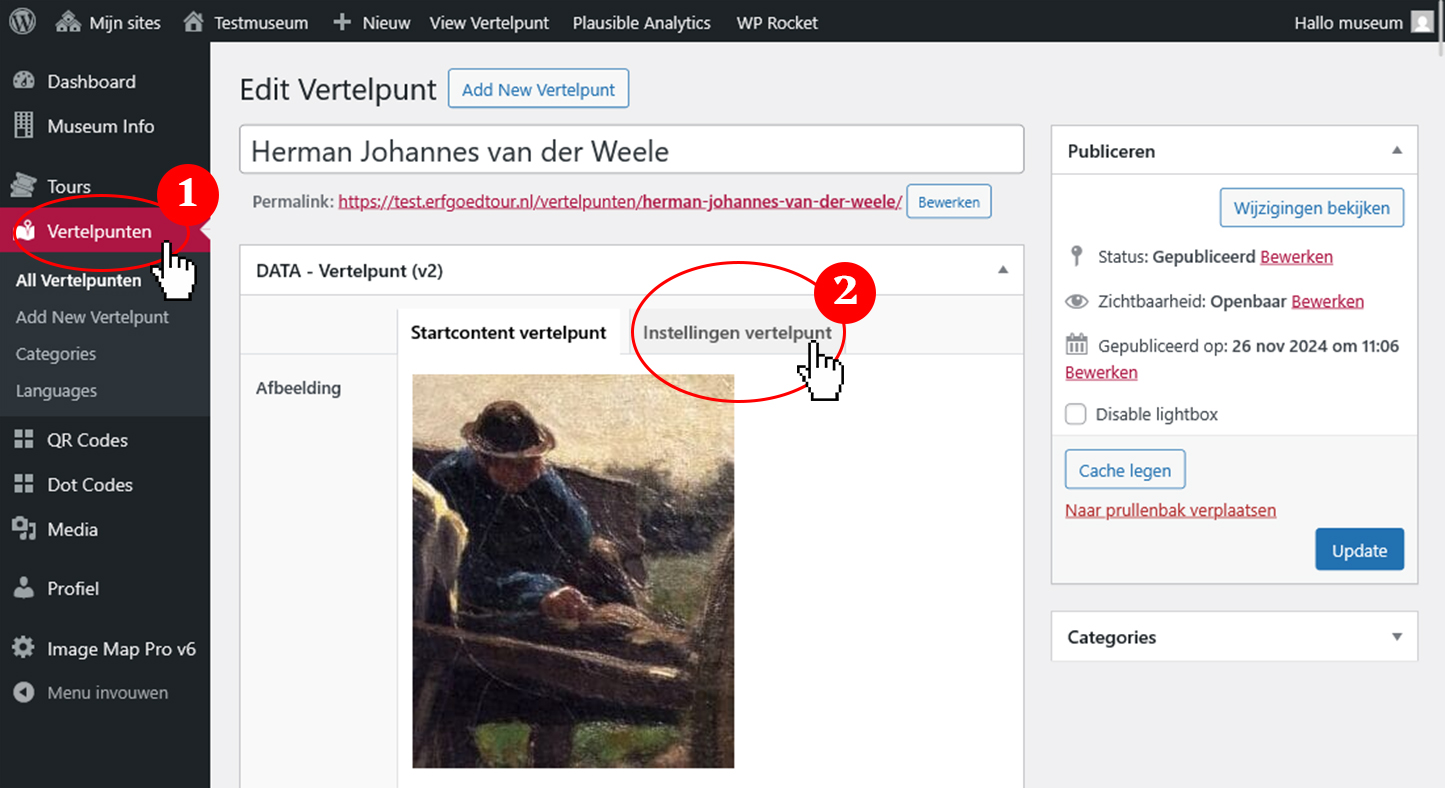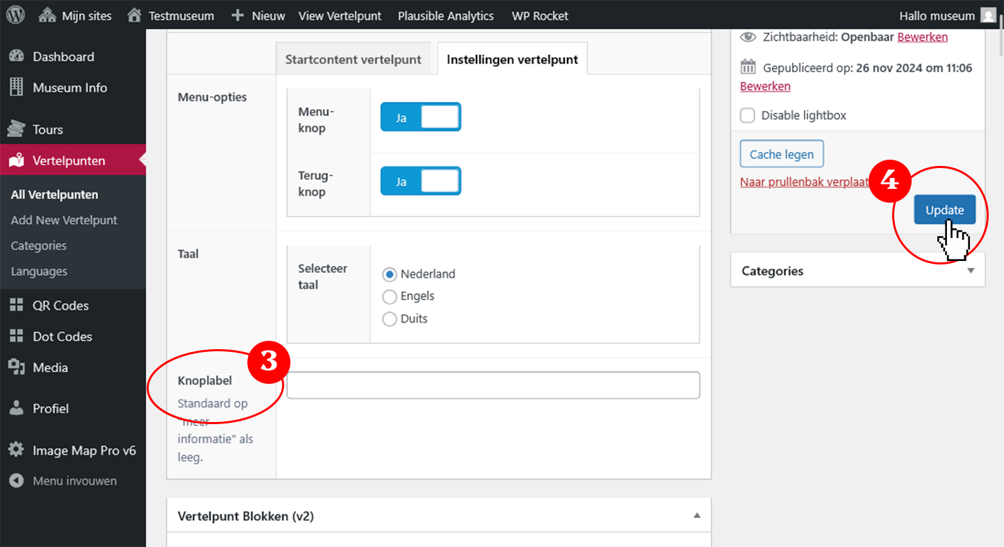1. Ga naar Vertelpunten in de zijbalk en selecteer het vertelpunt waarvan je de knop wilt aanpassen