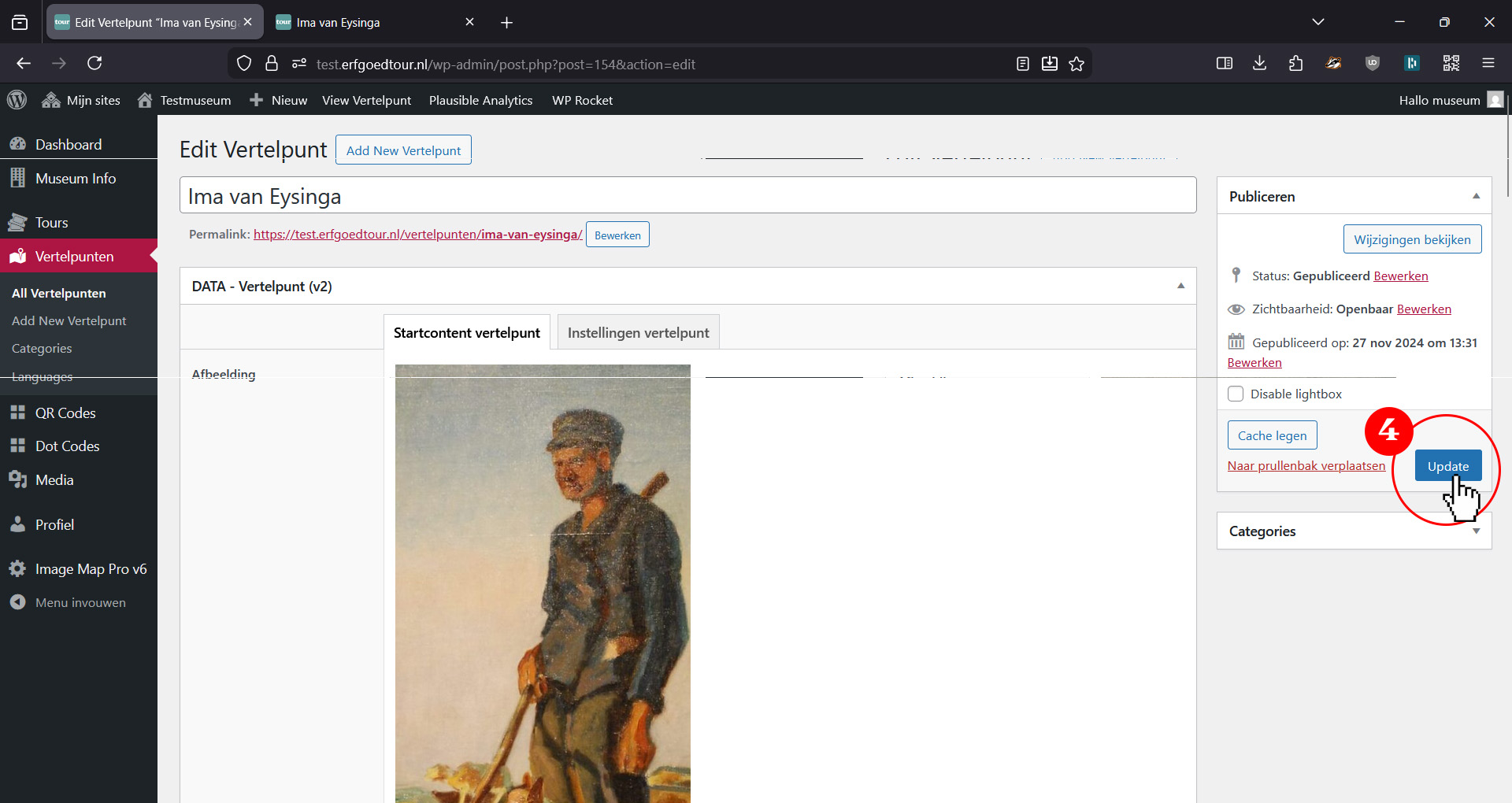 1. Ga naar Vertelpunten in de zijbalk en selecteer het vertelpunt waaraan je de afbeelding wilt toevoegen
