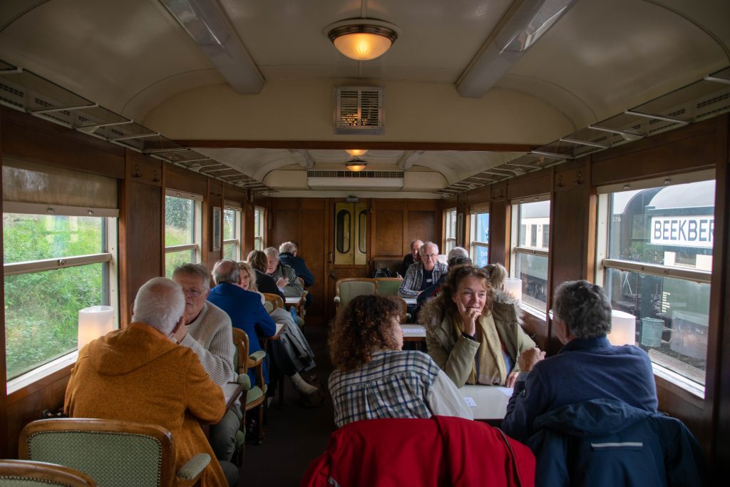 De tweede workshop vond plaats in een rijtuig van de Veluwsche Stoomtrein Maatschappij: de perfecte locatie voor een speeddatesessie. In drie korte rondes spraken de vertegenwoordigers van verschillende organisaties met elkaar over hun museum, locatie, collectie en verhaal. Waar liggen de overeenkomsten? Wat maakt ieder museum uniek? En vooral: hoe kunnen de musea elkaar aanvullen en versterken?