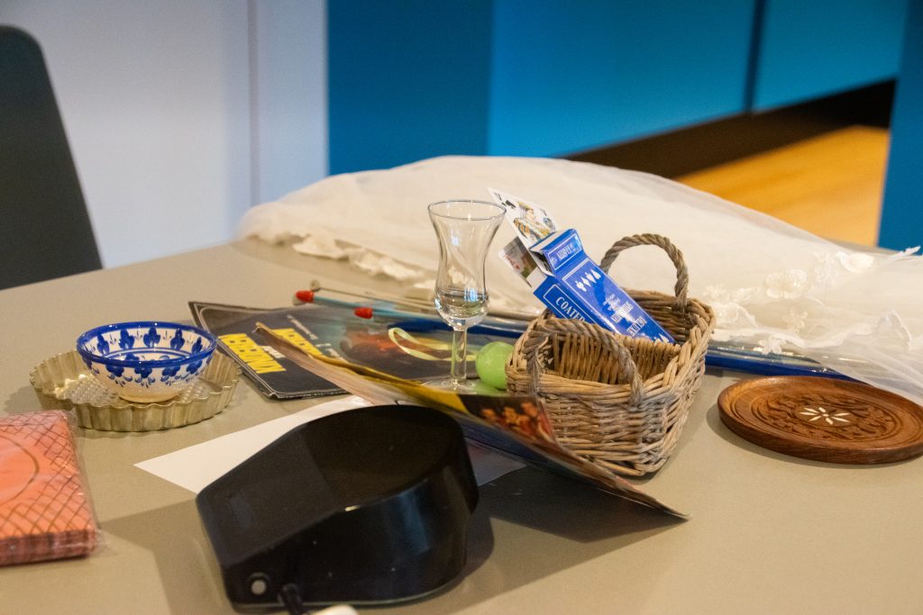Na de eerste presentaties gingen we met de deelnemers in kleine groepen uiteen. Verspreid over het atrium van het Gelders archief lagen objecten. Cd’s, een bruidssluier, gereedschap, kookgerei, een klompje, een kerstbal… tientallen objecten waren uitgestald over de tafels. De aanwezigen bespraken welke verschillende soorten erfgoedvormen voor hen lagen en hoe zij het verhaal van dit object naar het publiek zouden brengen.