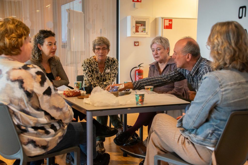 De gesprekstafels. In gesprek over kaarten en borrelglaasjes. Foto: Erfgoed Gelderland.